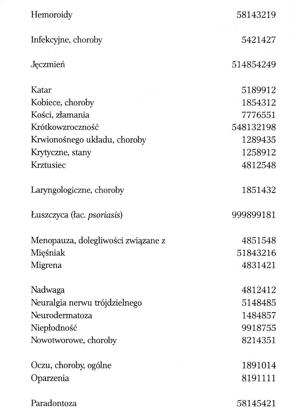 W książce podane są przykładowe kody na konkretne dolegliwości.